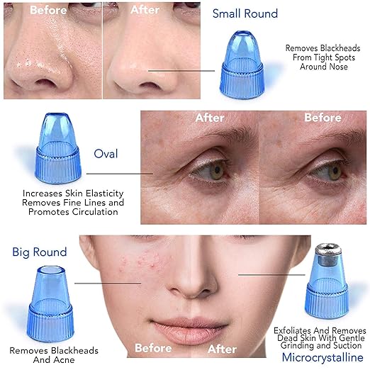 β’ 4 SUCTION HEADS: switch the suction head for your needs. Includes Small, Large, Oval, and Silicone Head, which is perfect to exfoliate dead skin for spa-like skin rejuvenation.